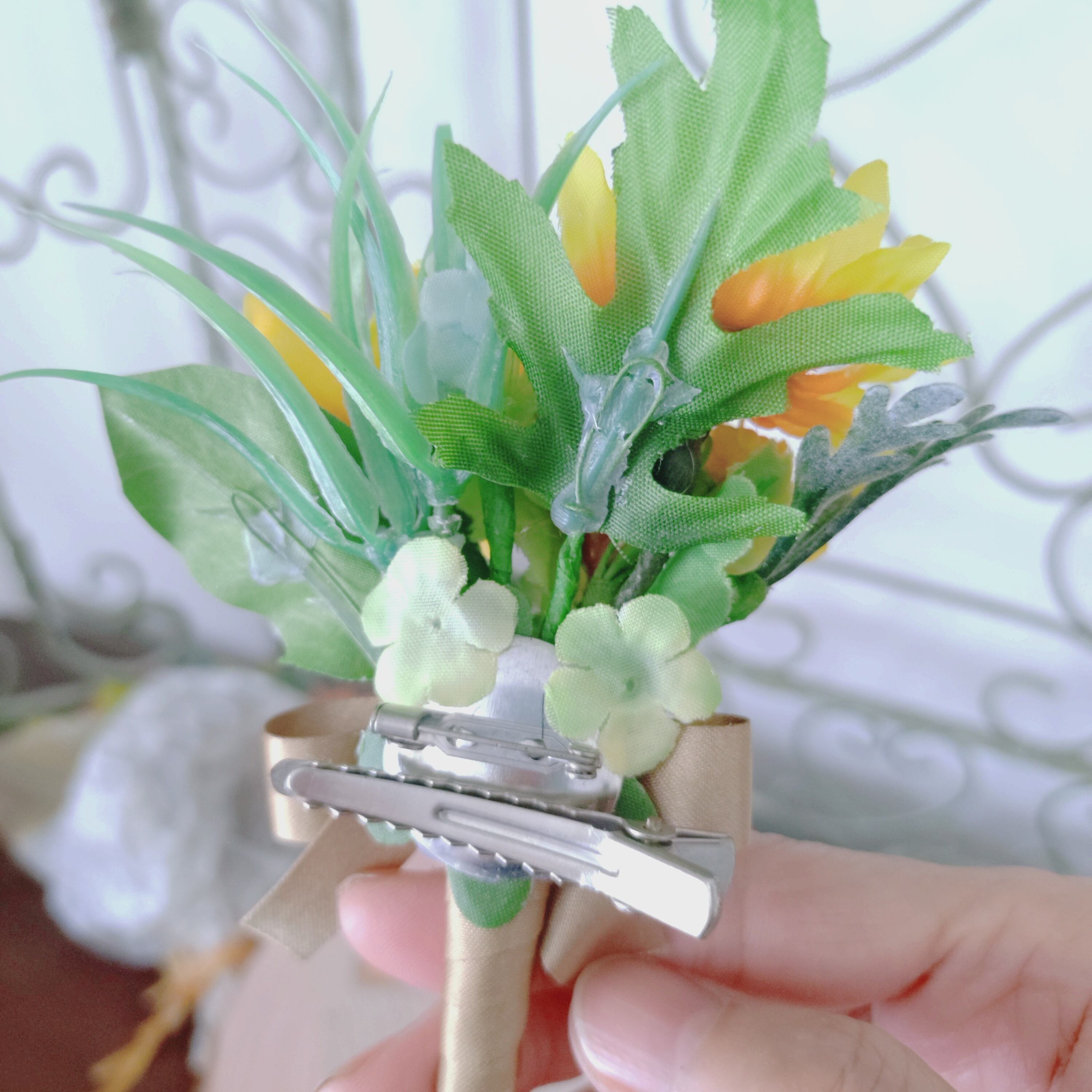 特別な日を彩るナチュラルなひまわりのコサージュです。
